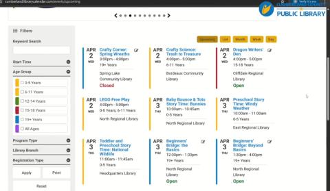 Discover all the programs happening at your library with the Online Calendar of Events here.